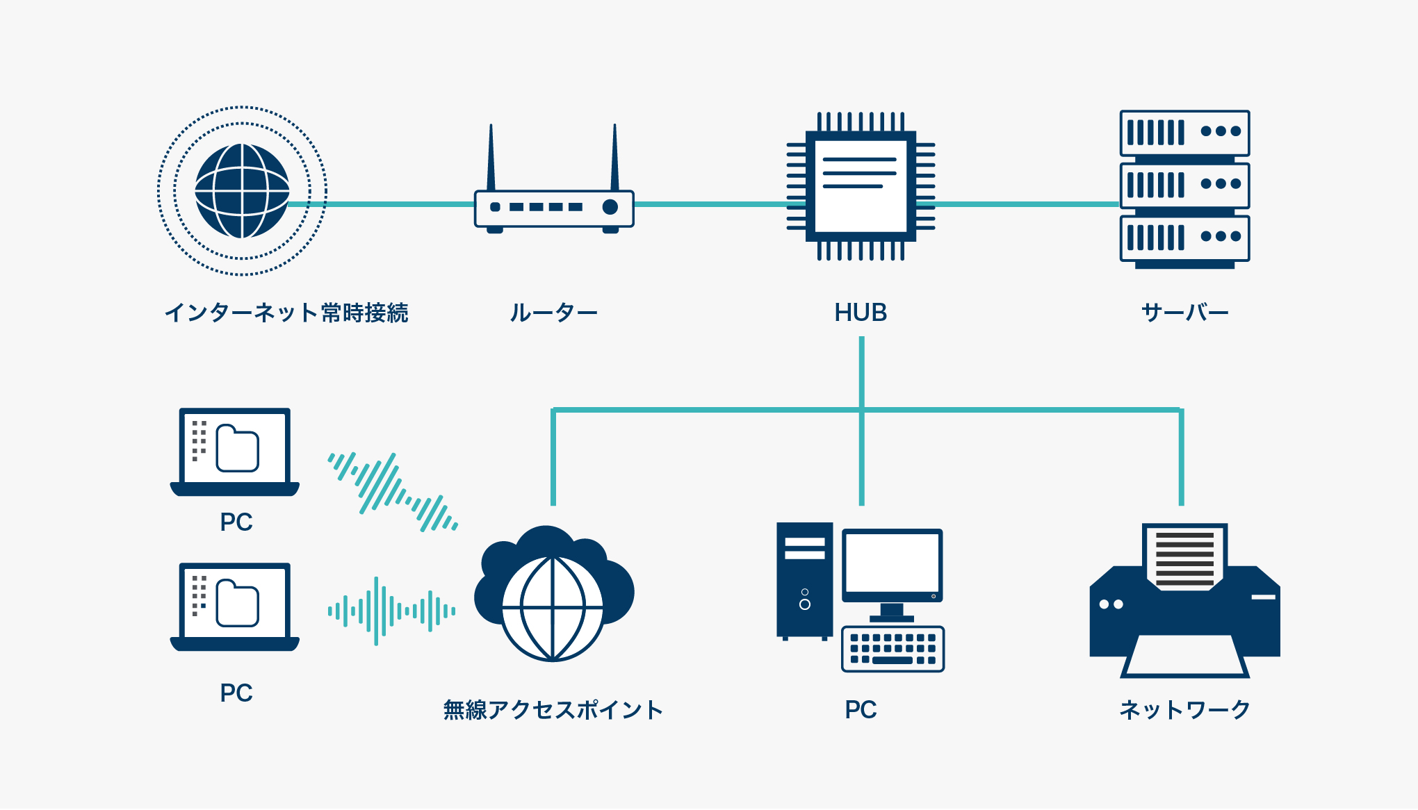 同じ建物内だけではなく、離れた事業所にあるパソコンなどのネットワーク同士を接続し、データをやりとりできるようにします。