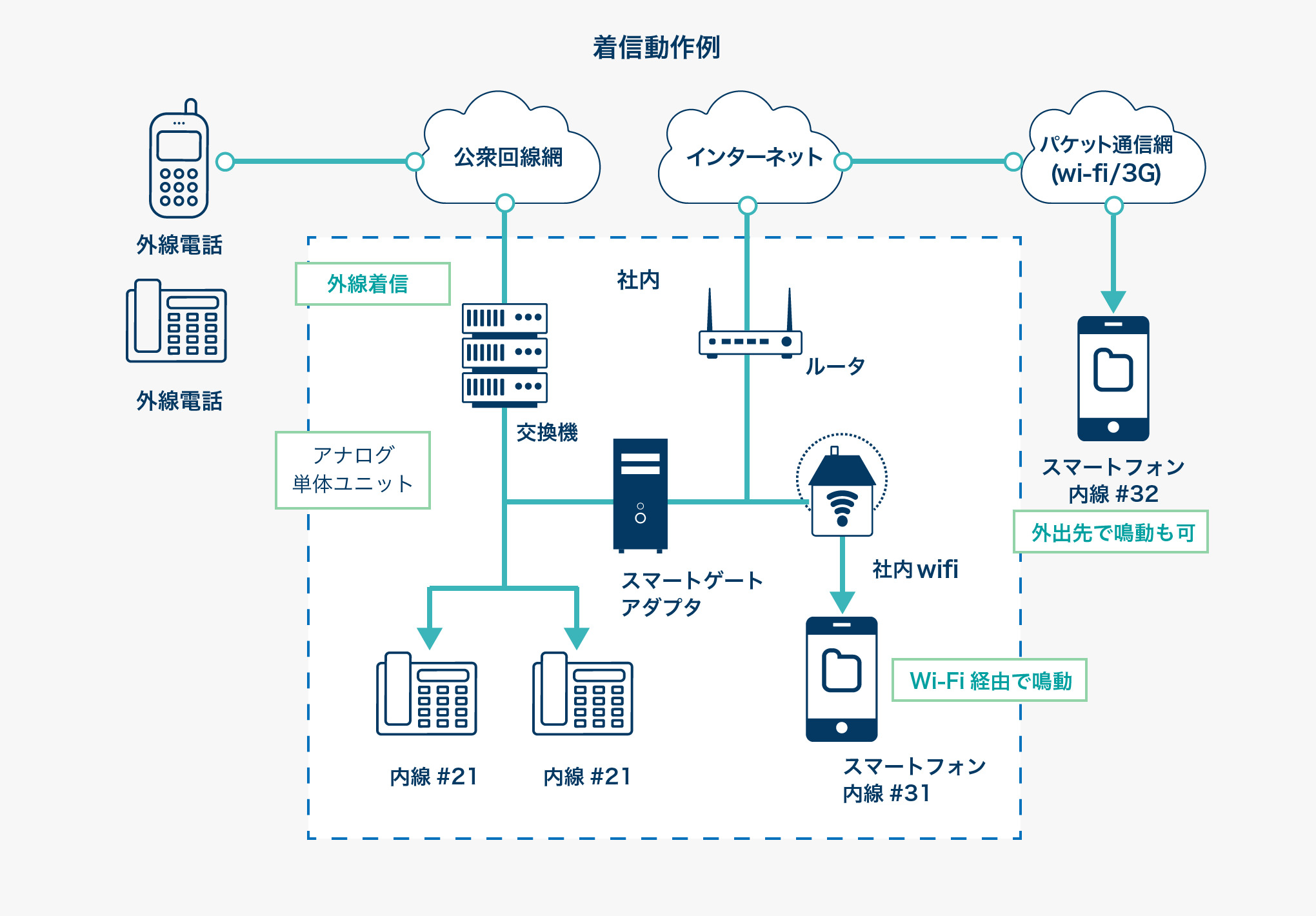 社内電話の内線としてスマートフォンを利用できます。